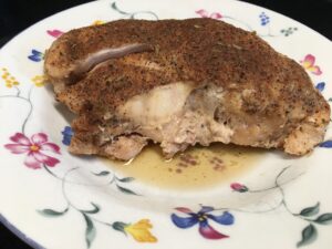 - Plate the chicken breast and pour some juice over it.